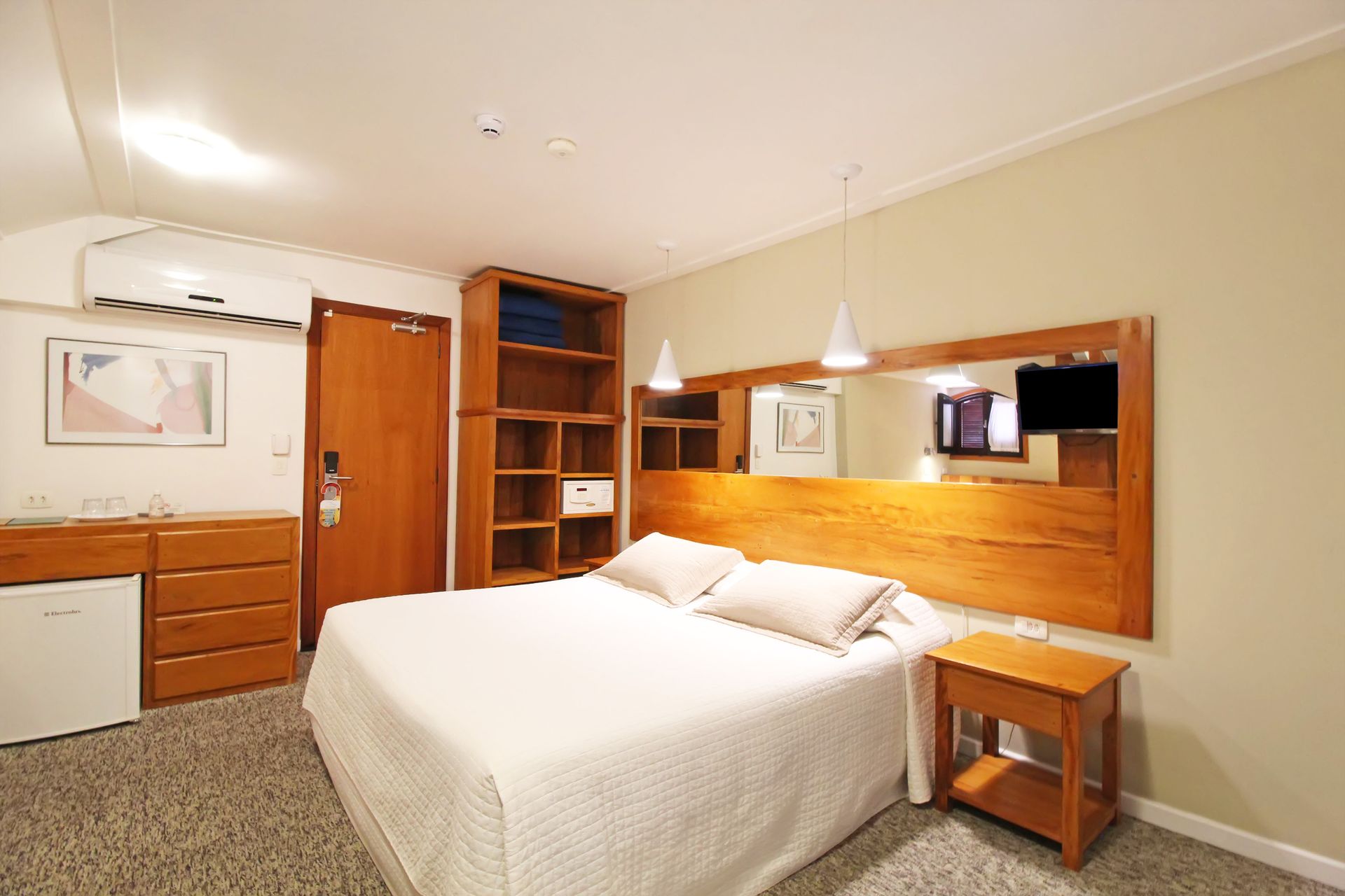 Dentro do apartamento, você encontrará um ambiente cuidadosamente projetado para o máximo conforto. As roupas de cama 100% algodão, são macias e frescas e combinadas com o ar condicionado programável, proporcionam uma atmosfera relaxante e agradável. A conectividade é assegurada pelo Wi-Fi disponível, enquanto comodidades como frigobar e secador de cabelos adicionam praticidade à sua estadia.